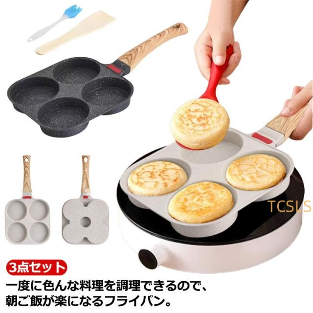 目玉焼き フライパン 仕切り付き 3点セット IH/ガス対応 4つ穴 マルチパン 洗いやすい 焼き器 お弁当 パンケーキ 焦げ付きにくい 家庭用 収納便利 キッチン用品 調理器具 お手入れ簡単