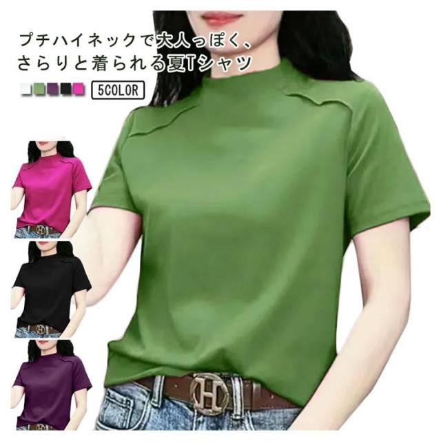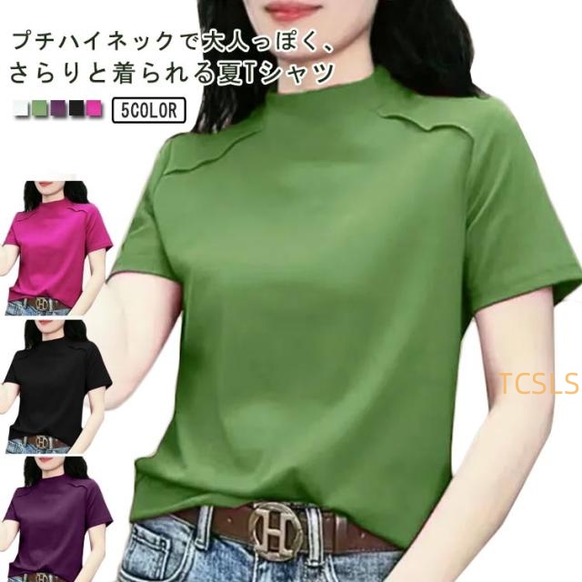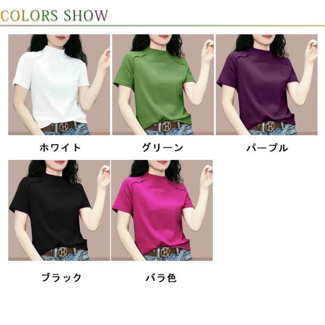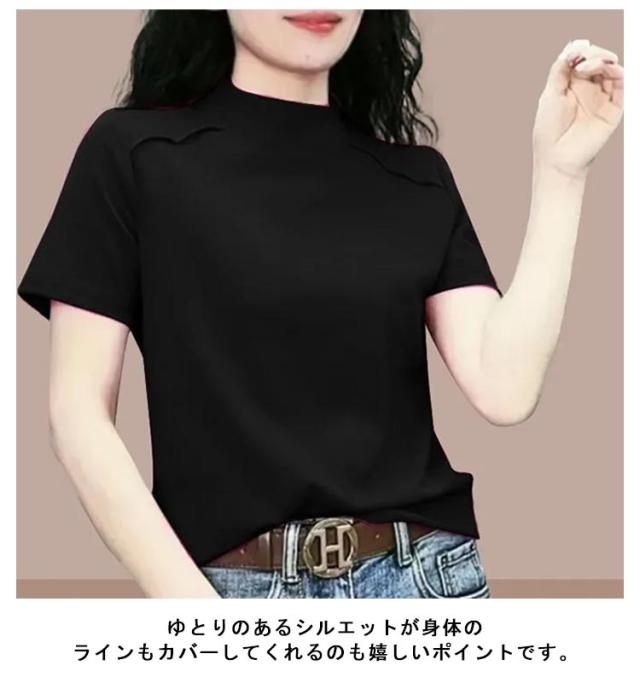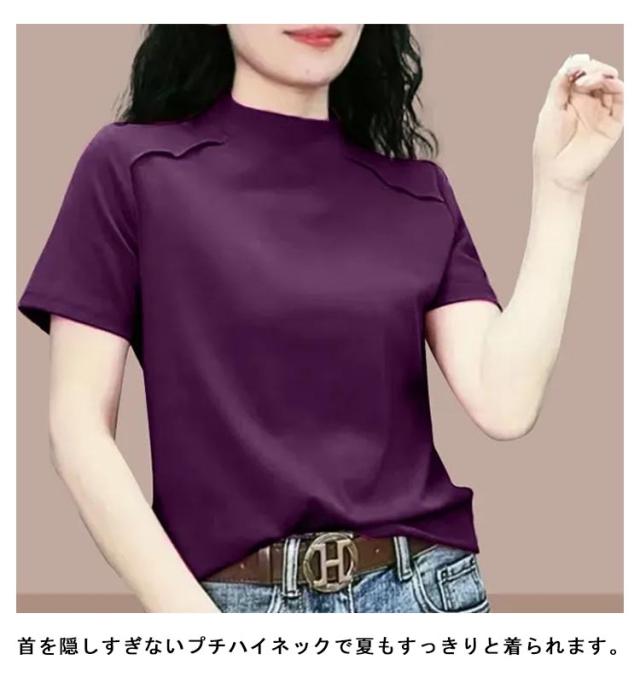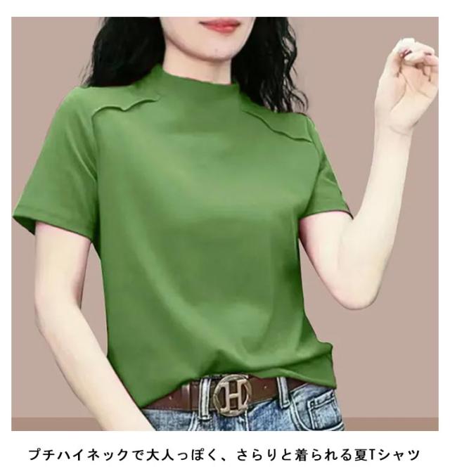 トップス Tシャツ カットソー 半袖 プチハイネック UVカット レディース 薄手 夏服 夏 ハイネック モックネック tシャツ ストレッチ 半袖tシャツ ゆったり 体型カバー 消臭 抗菌 吸汗 速乾 ブラウス 半袖ブラウス カジュアル 無地 シンプル 大人 おしゃれ 送料無料