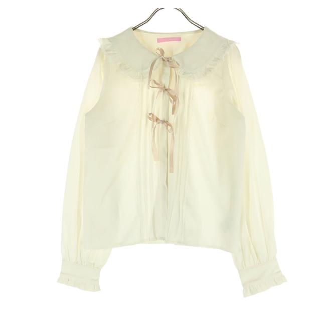 美品 Honey Cinnamon ハニーシナモン レース 長袖 ブラウス F アイボリー セーラー リボン レディース
