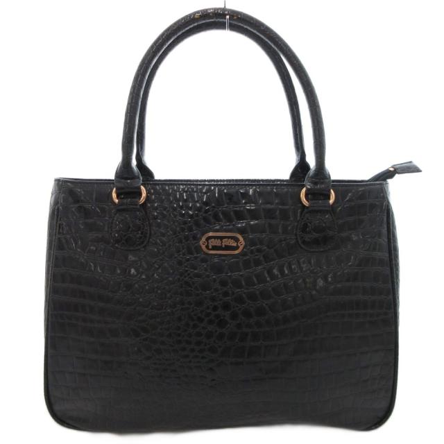 【中古】フォリフォリ Folli Follie トートバッグ クロコダイルレザー調 型押し 黒 ブラック /JS ■GY45 レディース