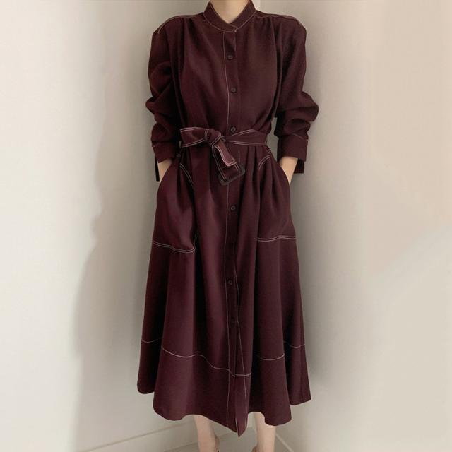 デニムワンピース ワンピース ロング丈 レディース デニム 大きいサイズ 春 夏 秋 冬30代 40代 50代 長袖 シャツワンピース ロングワンピース ワインレッド ネイビー