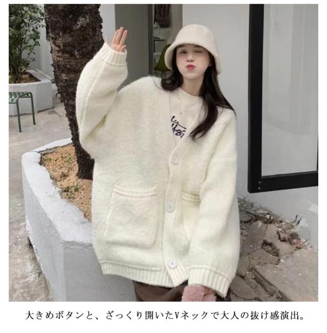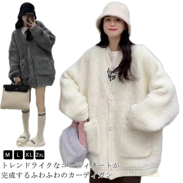 ニットカーディガン ニット トップス モヘア カーディガン 厚手 大きいサイズ 大きめ 羽織り ケーブルニット 無地 長袖 ロング アウター トップス コート キレイめ オーバーサイズ ゆったり 体型カバー 秋冬 ロングカーディガン 春 レディース
