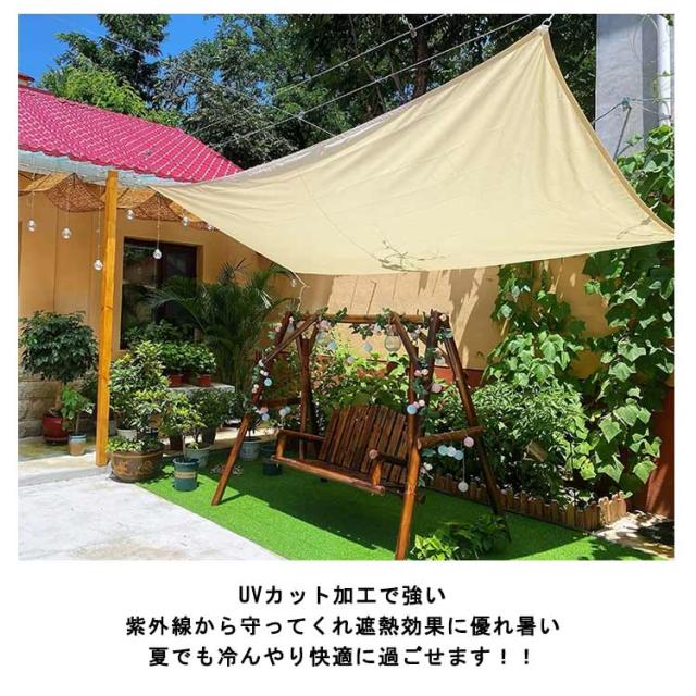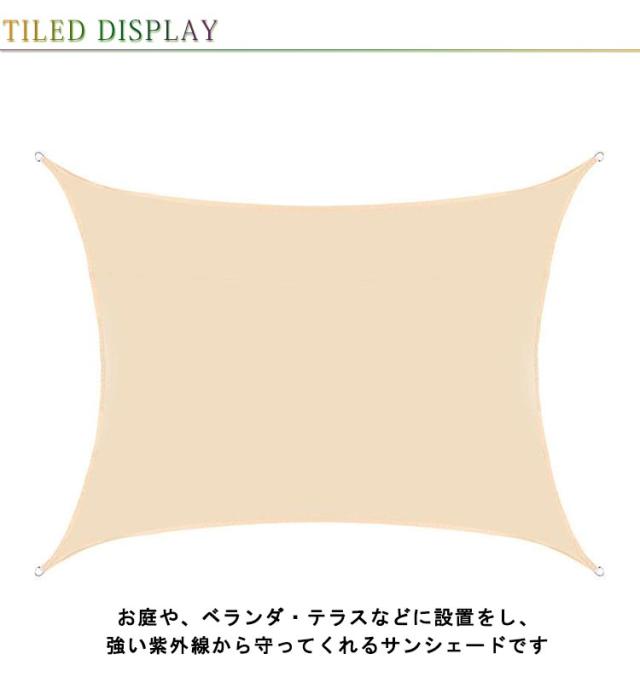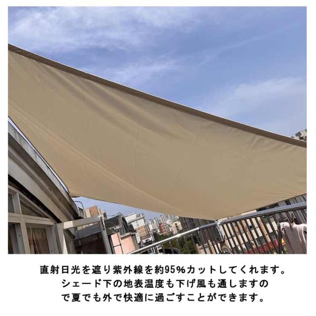 | お庭や、ベランダ・テラスなどに設置をし、強い紫外線から守ってくれるサンシェードです UVカット加工で強い紫外線から守ってくれ遮熱効果に優れ暑い夏でも冷んやり快適に過ごせます!! 直射日光を遮り紫外線を約95%カットしてくれます。シェード下の地表温度も下げ風も通しますので夏でも外で快適に過ごすことができます。 紫外線に強く色褪せにくい優れた耐候性 折り畳みによるシワも自然にとれていきます 雨からの侵食を防ぎ、風化を防止します。突然の雨からも洗濯物を守ることができます お洒落なデザインなので日よけだけでなく、ご自宅やお庭のエクステリアとしてもご利用なれます | |