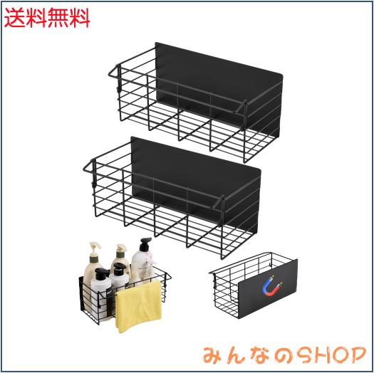 浴室用ラック マグネット お風呂 ラック 2個セット 浴室 洗面所 キッチン 収納棚((ブラック, 31cm&32cm)