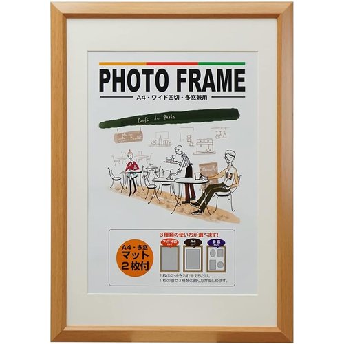 色名:ナチュラル ■モダンな絵と木目調のモールが飾った部屋を落ち着かせます■2枚のマットを使い分けば写真を飾るアレンジが増えます■落ち着きのある2色の色合いで飾る写真を演出します■いつも身近に置いても、飽きのこないシンプルでスリムなデザイン、そして、壁にやさしい軽量フレームにこだわりました■ワイド4切とA4サイズマットと多窓マット使用で3種類の兼用フレームができます●外寸:W284×H398×D18mm●内寸:W256×H368×D18mm●マット窓寸:A4サイズ/W200×H283mm、多窓(4窓)/L×2(W117×H79mm)、KG(W142×H92mm)、楕円(W92×H92mm)●質量:約520g●面材:PET●付属品:吊り紐・取扱説明書