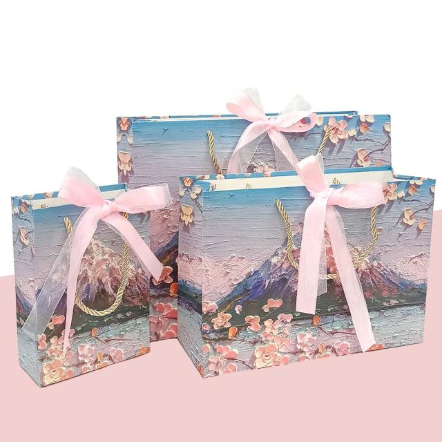 ◆商品名:ラッピング 袋 手提げ 紙袋 プレゼント用 ギフトバッグ おしゃれ ギフト 袋 3D 立体 視覚 油絵 かわいい スタイル 誕生日 包装袋 (3枚-L+