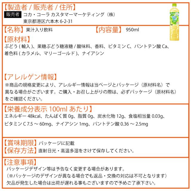 ミニッツメイド Qoo(クー)白ぶどう 950ml 24本 (12本×2ケース) PET 安心のメーカー直送 日本全国送料無料