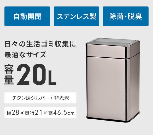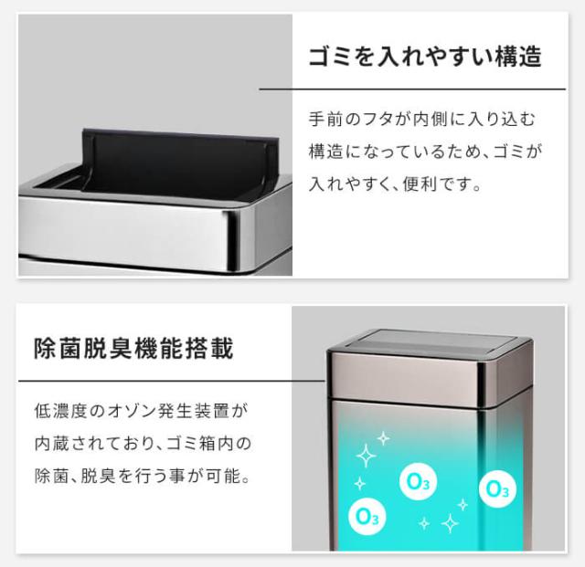 【値下げ】ゴミ箱 自動開閉 センサー式 ダストボックス ステンレス製 20L オゾン除菌脱臭機能付き フタ格納式 静音 静か 自動ゴミ箱 ふた付き 20リットル おしゃれ ステンレス 自動センサー スリム ごみ箱 台所 キッチン 1年保証 スタイリッシュ 新生活 一人暮らし