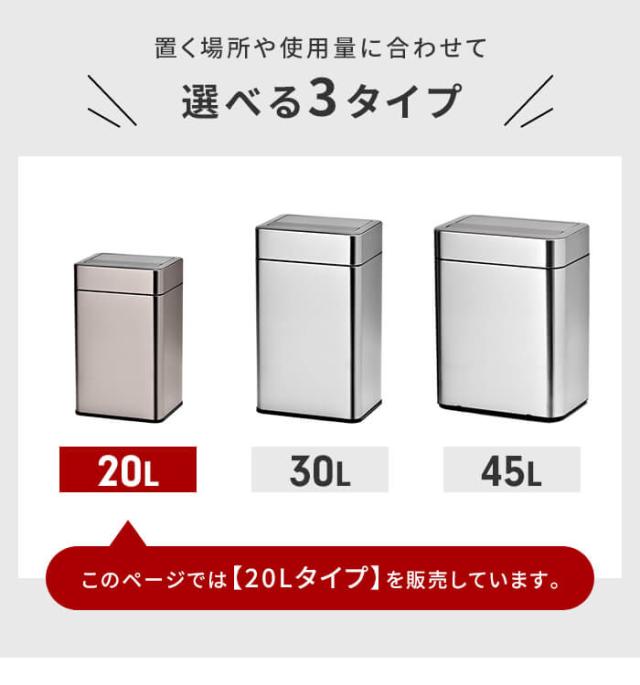 | 【オゾン除菌消臭機能付きセンサー式ダストボックス】 ● 20L ● 30L ● 45L ※このページは[オゾン除菌消臭機能付きセンサー式ダストボックス 20L]を販売しております。 |