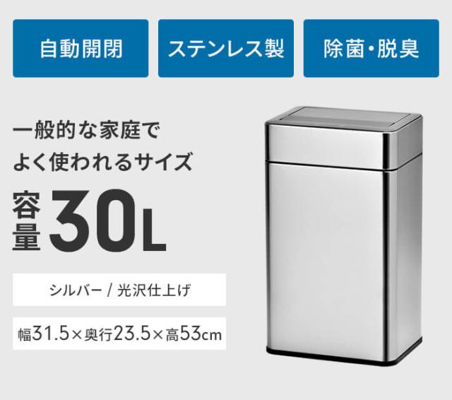 【値下げ】ゴミ箱 自動開閉 センサー式 ダストボックス ステンレス製 30L オゾン除菌脱臭機能付き フタ格納式 静音 静か 自動ゴミ箱 ふた付き 30リットル おしゃれ ステンレス 自動センサー 大容量 ごみ箱 台所 キッチン 1年保証 スタイリッシュ 新生活 一人暮らし