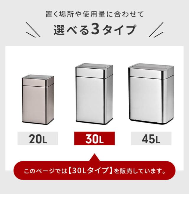| 【オゾン除菌消臭機能付きセンサー式ダストボックス】 ● 20L ● 30L ● 45L ※このページは[オゾン除菌消臭機能付きセンサー式ダストボックス 30L]を販売しております。 |