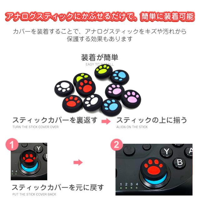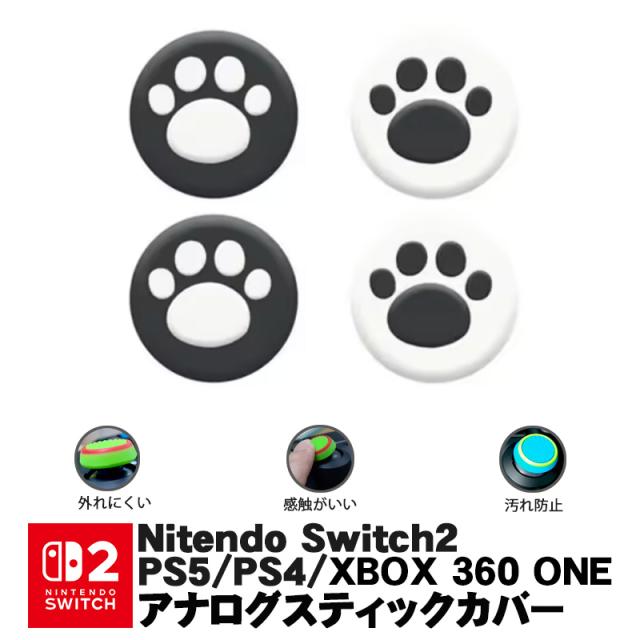 Switch2 PS5 PS4 XBOX ONE 360対応 アナログスティックカバー Switch Proコントローラー プレイステーション プレステ コントローラ ジョイスティック 肉球 猫 白地ブラック 黒地ホワイト 各色2個 4個セット【送料無料】
