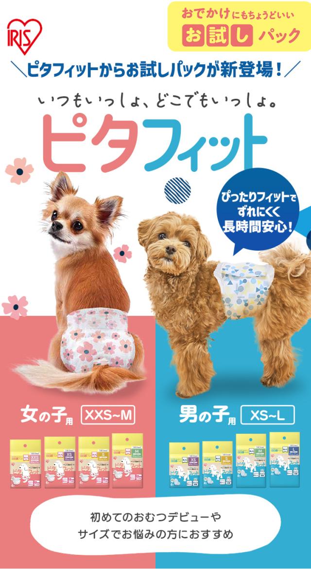 犬 オムツ オス メス XXS XS S M Lサイズ 各4枚入 お試しセット 4回吸収 長時間 幅広テープ 薄型 犬オムツ 男の子用 女の子用 小型犬 中型犬 尿漏れ ペットオムツ 介護 マナー 紙おむつ オシッコ 犬のオムツ アイリスオーヤマ ピタフィット MNPD FNPD *