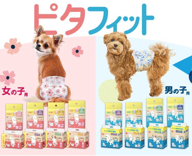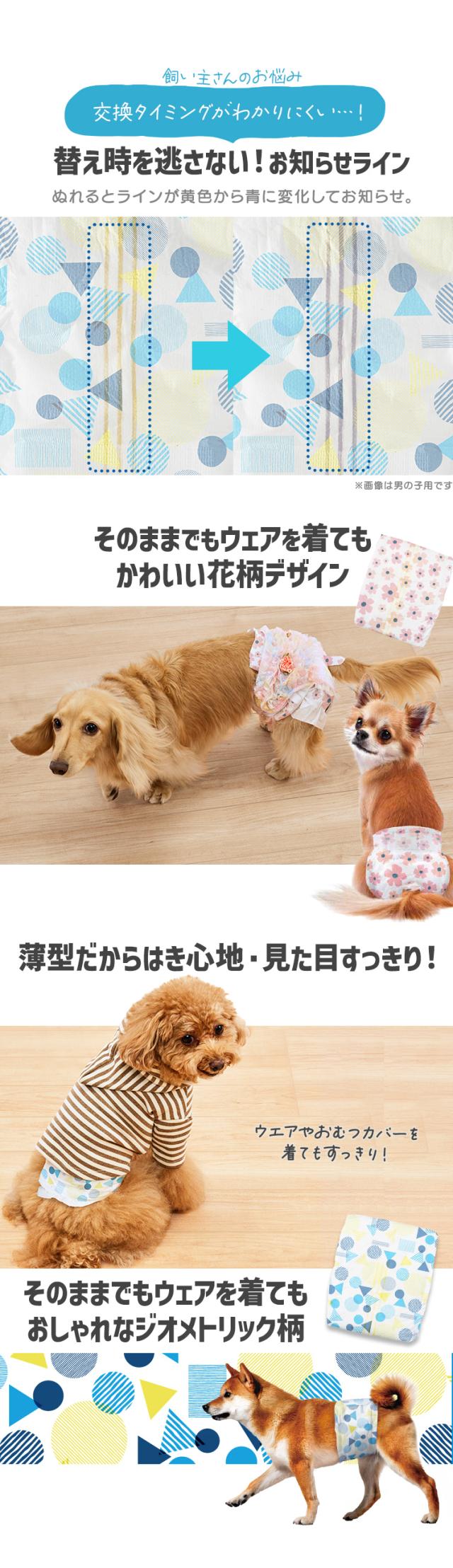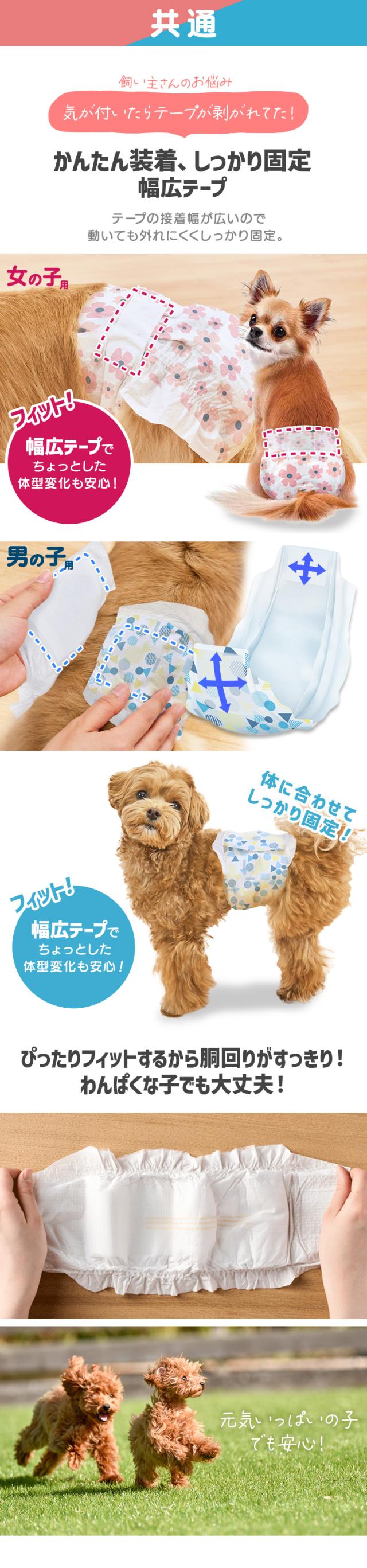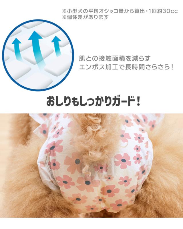ぴったりフィットでモレにくく、たっぷり吸収設計のペット用おむつ[女の子用]です。