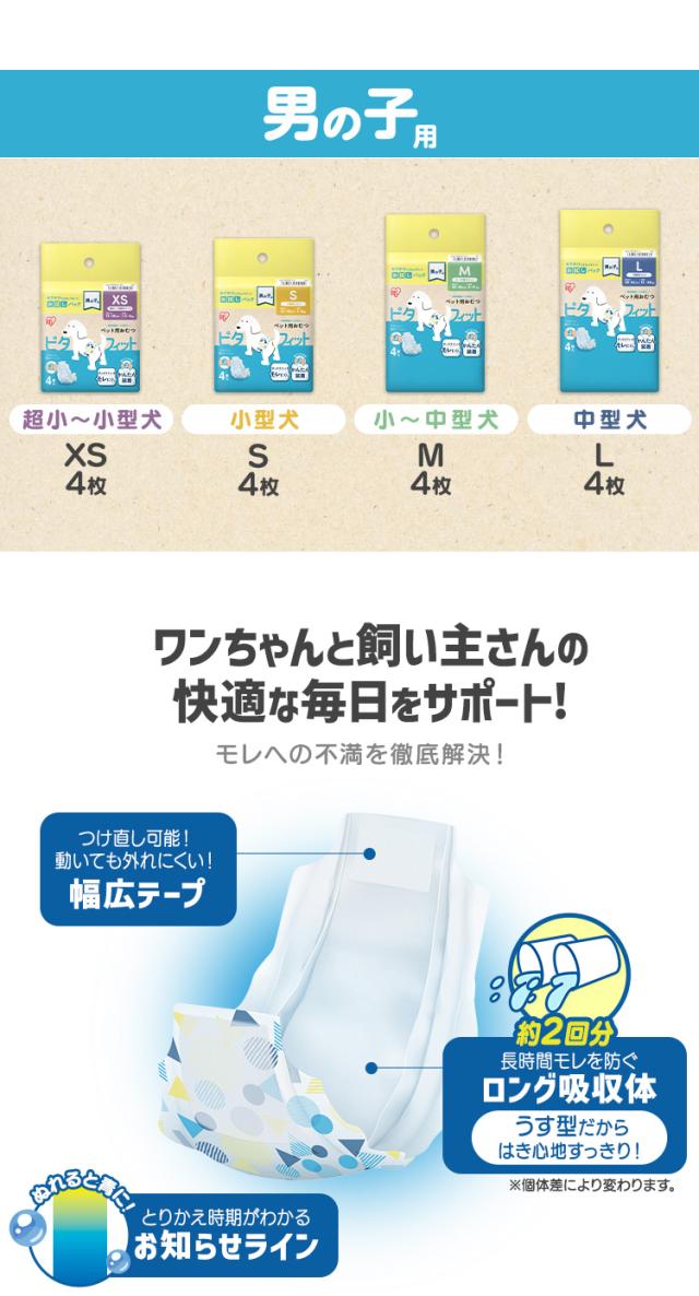 (検索用:犬・オムツ・オス・メス・XXS・XS・S・M・Lサイズ・各4枚入・お試しセット・4回吸収・長時間・幅広テープ・薄型・犬オムツ・男の子用・女の子用・小型犬・中型犬・尿漏れ・ペットオムツ・介護・マナー・紙おむつ・オシッコ・犬のオムツ・4967576799041・4967576799058・4967576799065・4967576799072・4967576799089・4967576799102・4967576799126・4967576799133・アイリスオーヤマ)
