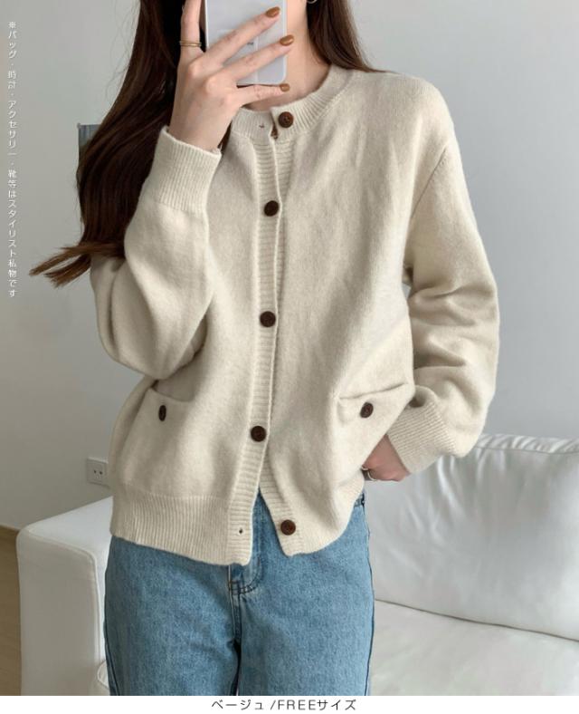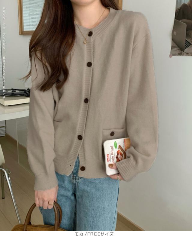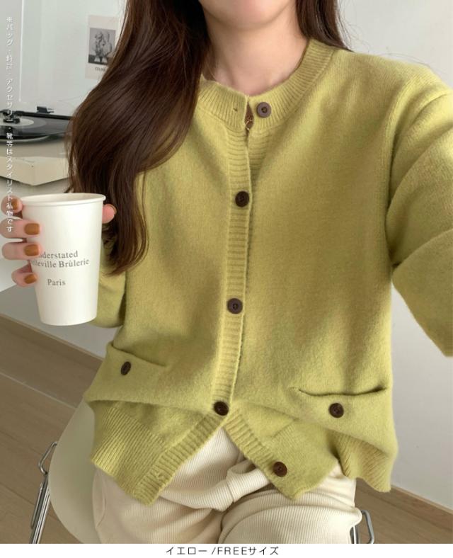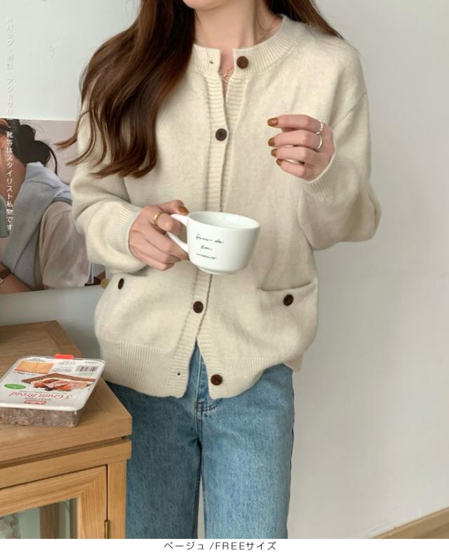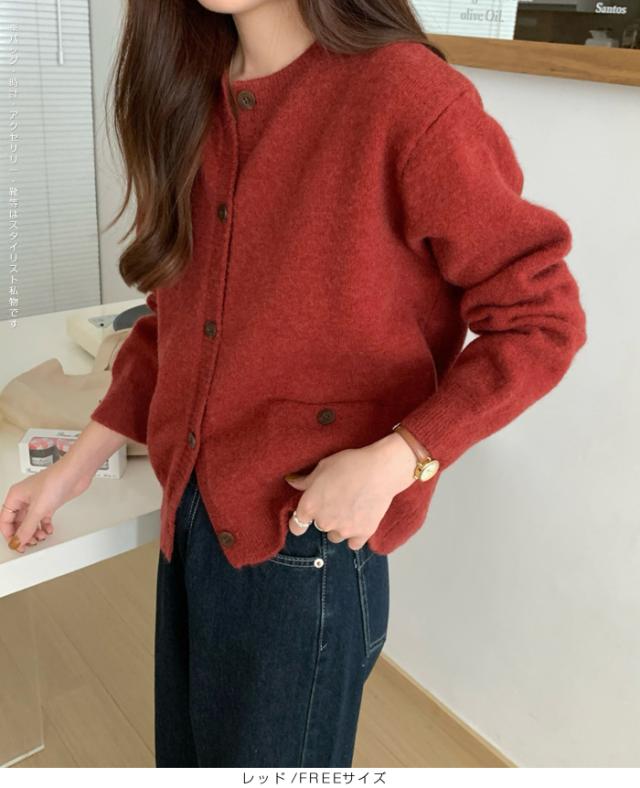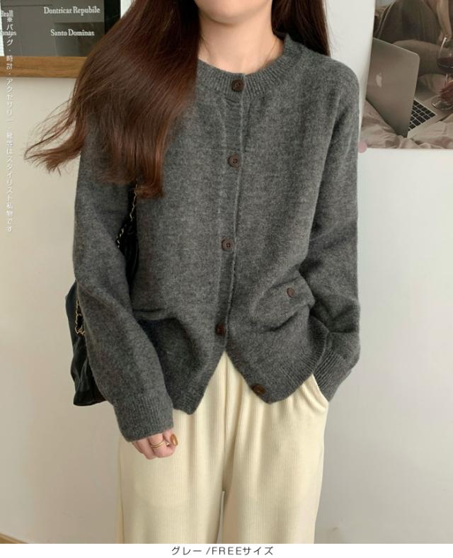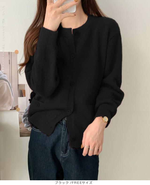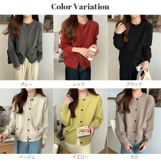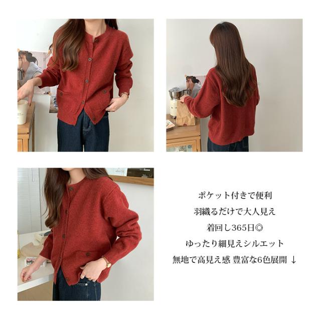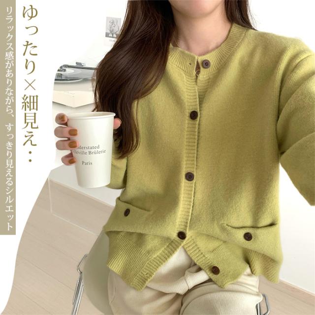40%OFFクーポン!トップス アウター ニットカーディガン カーディガン レディース ゆったり 秋冬 ポケット付き 体型カバー 通勤 定番カラー シンプル 長袖 無地 オフィス カジュアル 【シンプルクルーネックニットカーディガン】 秋新作