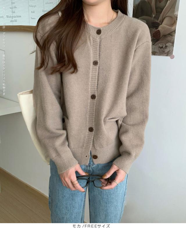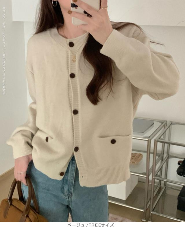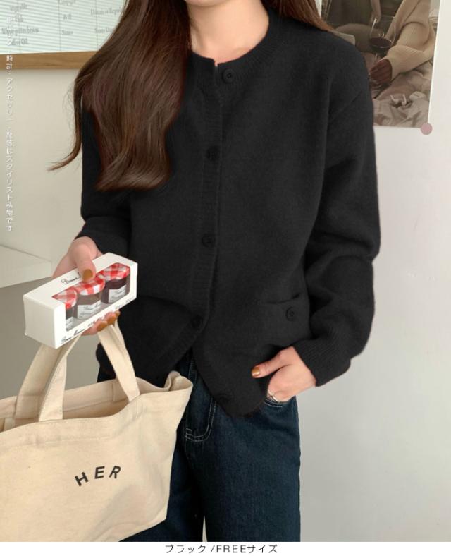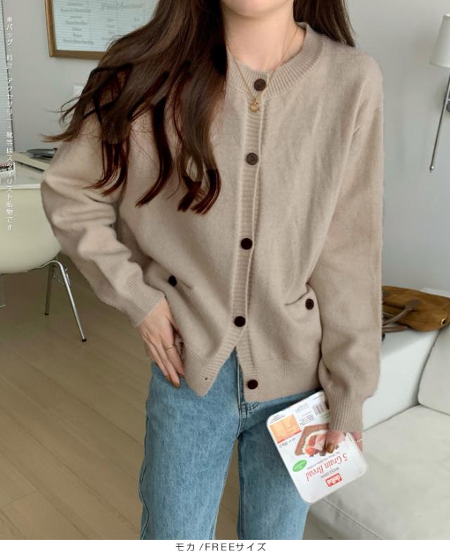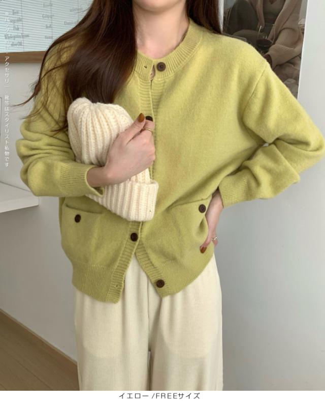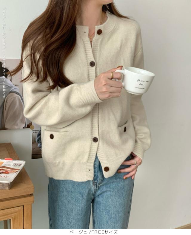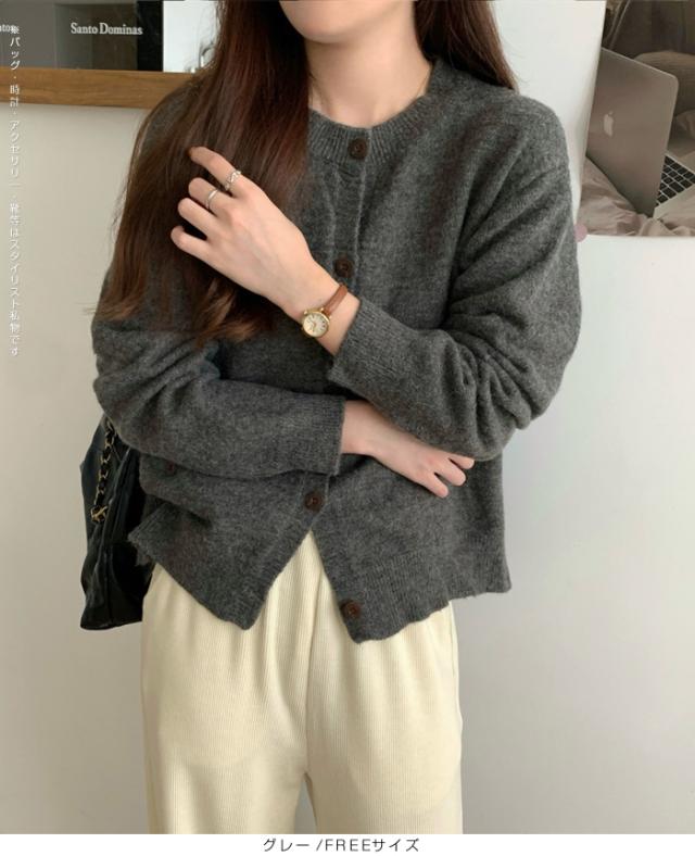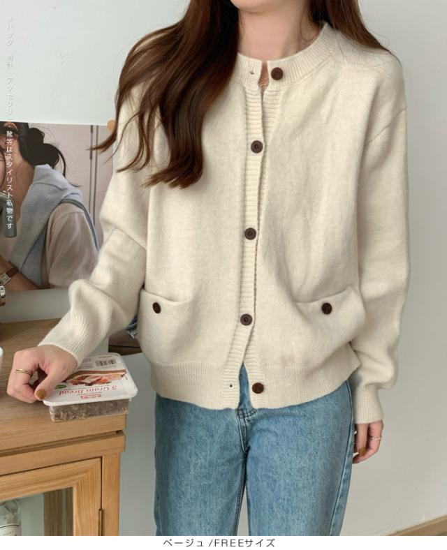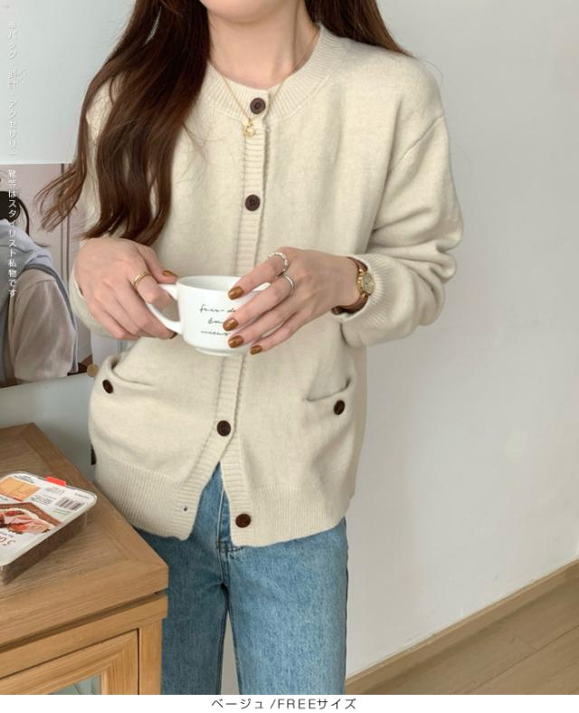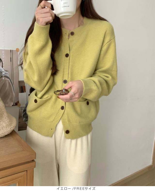 40%OFFクーポン!トップス アウター ニットカーディガン カーディガン レディース ゆったり 秋冬 ポケット付き 体型カバー 通勤 定番カラー シンプル 長袖 無地 オフィス カジュアル 【シンプルクルーネックニットカーディガン】 秋新作