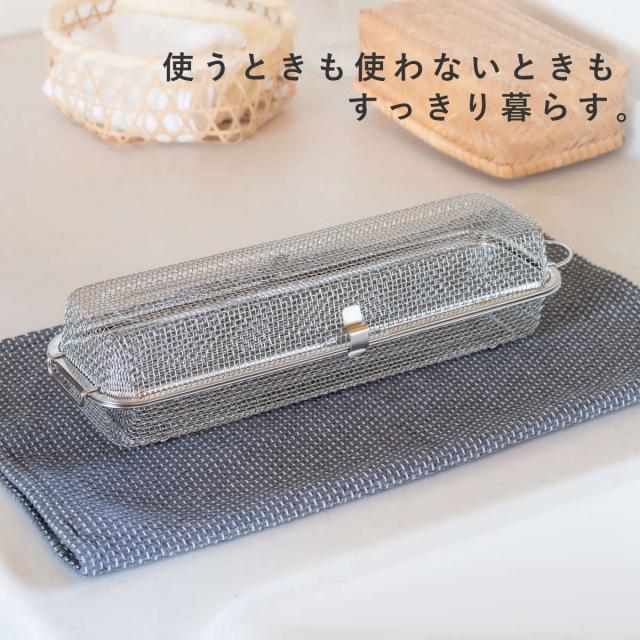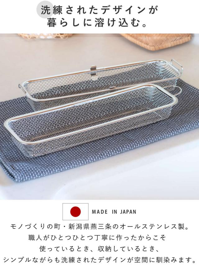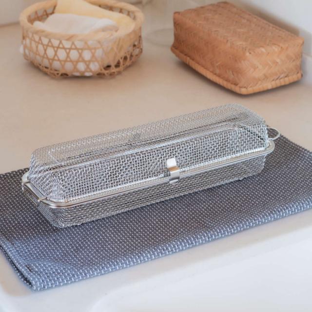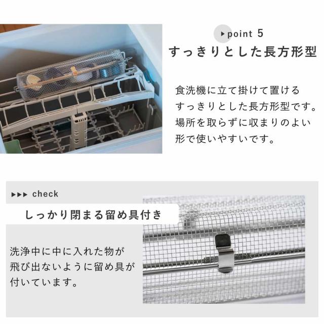 ビーワーススタイル すっきり暮らす 食洗機カゴ ロングタイプ ( 食洗機 かご 水切り 食洗機用小物カゴ 小物入れ 日本製 オールステンレス メッシュかご 小物洗い お弁当用品 カトラリー 水筒パッキン ピック )