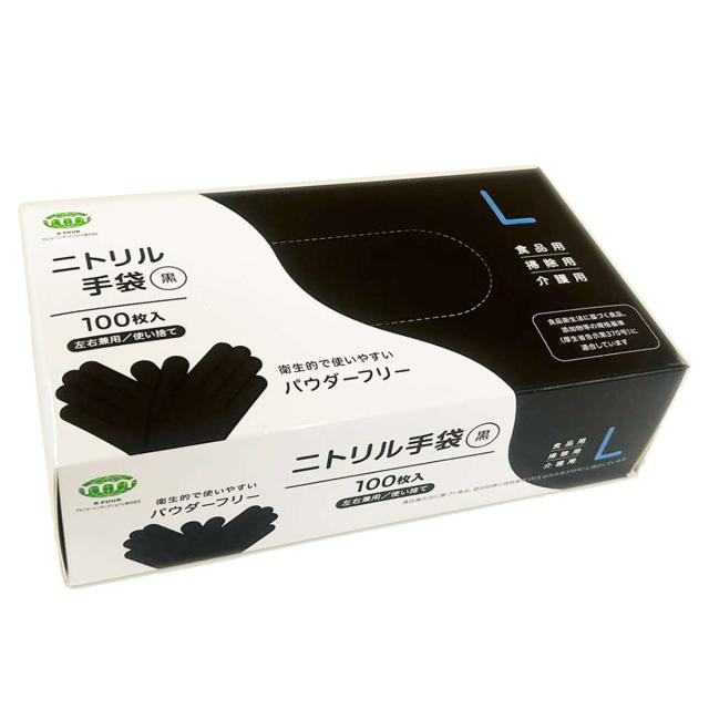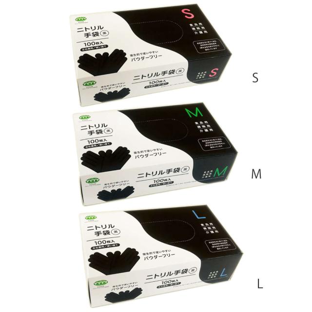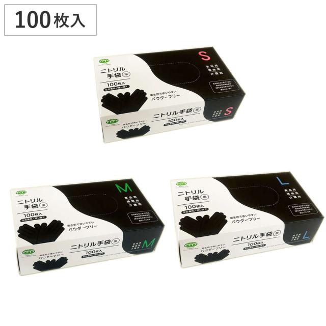 手袋 ニトリル手袋 100枚 S M L ブラック 左右兼用 パウダーフリー ( 使い捨て手袋 てぶくろ 使い切り 使い捨て 粉なし 左右両用 黒 食品衛生法適合品 調理 食品加工 盛り付け ガーデニング 介護 DIY 毛染め )