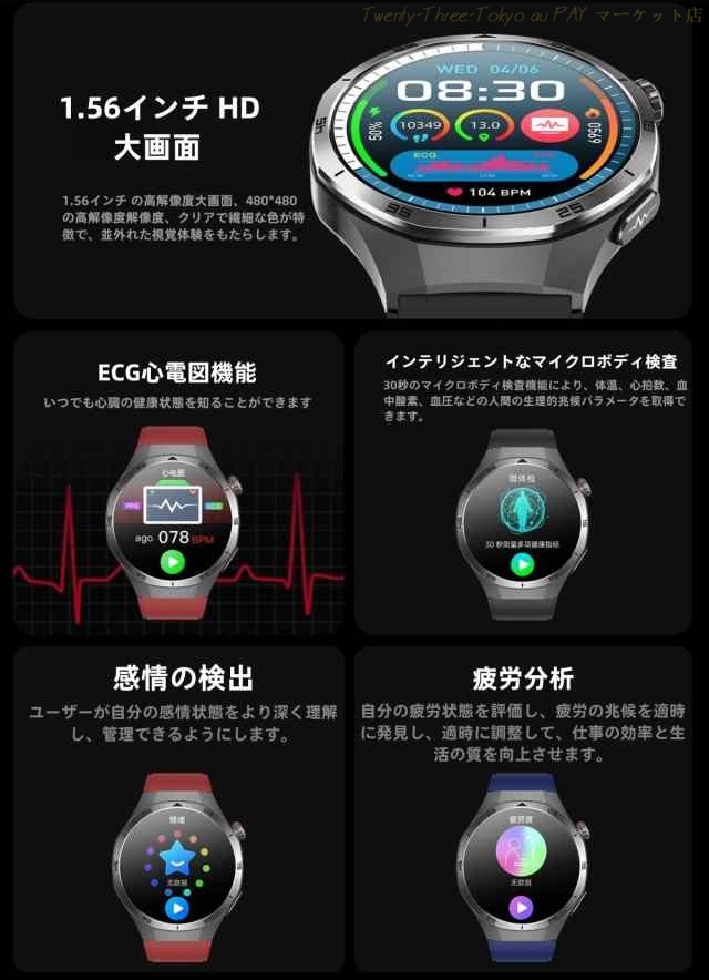 【三太郎の日】2026最新 スマートウォッチ SOS機能 1.56インチ 丸型 心拍数 血中酸素 ECG心電図 血圧測定 血糖値測定 体温 血液分析 呼吸率 通話機能 着信通知 健康管理 睡眠 IP68防水 ギフト