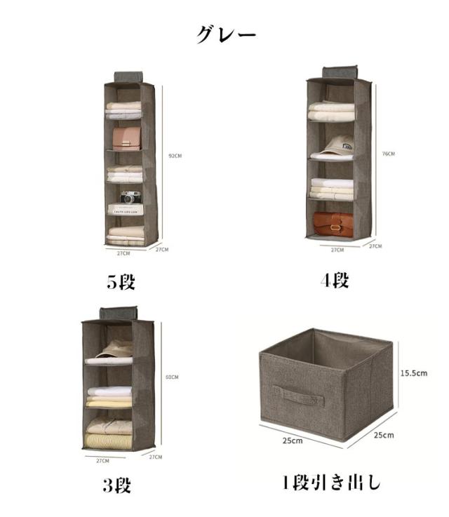 ラック 収納ラック クローゼット ハンガーラック 5段 折り畳み式 クローゼット 吊り下げ ケース 収納ケース 引き出し 収納 吊り下げ収納 ボックス 3段 4段 ハンガー バッグ収納 吊るす収納 吊るす 布 下着 衣類 セーター 帽子 押し入れ