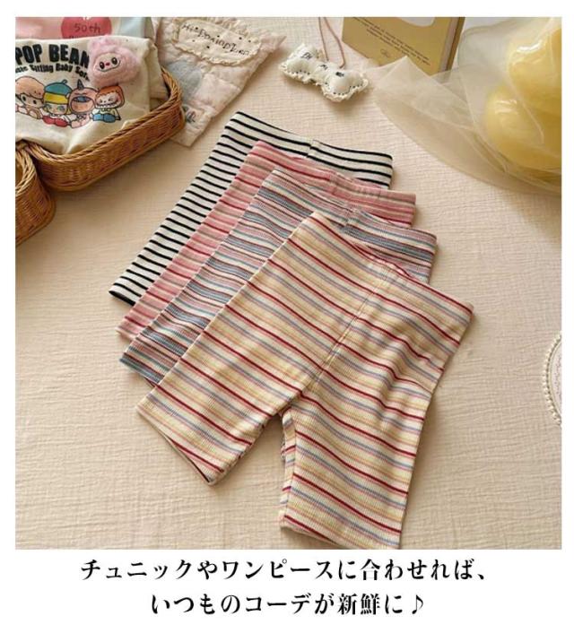 レギンス レギンス 5分丈 ベビー ボトムス 薄手 かわいい ガールズ 女の子 夏用 ボーダー柄 レギンスパンツ ストレッチ ボーダー柄 キッズ 子供レギンス ショートレギンス レギパン 韓国子供服