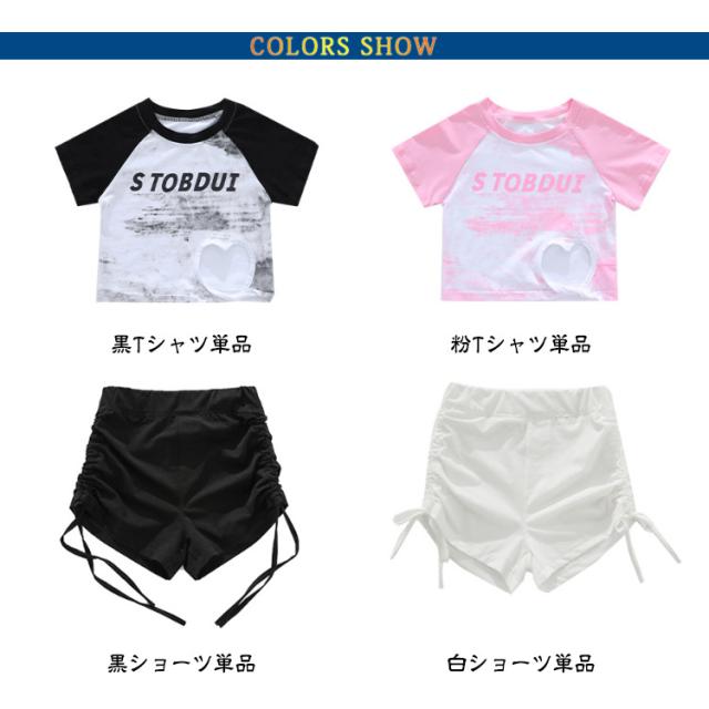 ショートパンツ ダンスパンツ 半袖 ショーツ Tシャツ ダンス衣装 単品 ダンス衣装 女の子 黒 チア キッズダンス かわいい 練習着 白 かわいい 舞台 hiphop K-pop 団体服 演出服 ストリートダンス ジャズダンス ヒップホップ