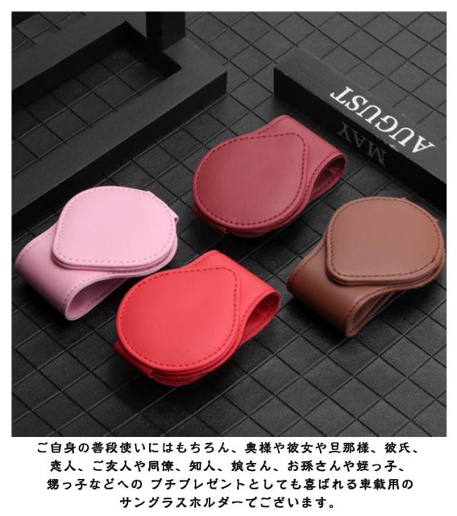 | 車のサンバイザーに取り付けられるメガネホルダー。 マグネットが付いていて、クリップなどを取り付けられます 。 このスタイリッシュなサングラスホルダーは、運転席、助手席どちらのサンバイザーにも簡単に取り付けられ、 サングラスや眼鏡を安全かつ手軽に保管できます。 高品質のPUレザー素材を使用しており、デザイン性に優れ、軽自動車やワゴン車、ファミリーカー、4WD(四輪駆動車)、 セダンタイプ、高級車など幅広い車種の車内のインテリアとも調和します。 選べる10色のバリエーションも魅力的で、お好みや車の内装に合わせて選べるため、車内をよりお洒落に演出することができます。 このサングラスホルダーは、クリップ式で取り付けは非常に簡単。ドライブ中にサングラスが必要な時、すぐに取り出せる利便性と機能性を持ち合わせています。 車のドライブをより快適にするための必需品であり、見た目も機能も兼ね備えたこのサングラスホルダーは、 自分用はもちろんのこと、ドライバーへのプレゼントとしても最適です。毎日の運転が少し楽しく、そしておしゃれに変わること間違いなしです。 ご自身の普段使いにはもちろん、奥様や彼女や旦那様、彼氏、恋人、ご友人や同僚、知人、娘さん、お孫さんや姪っ子、甥っ子などへの プチプレゼントとしても喜ばれる車載用のサングラスホルダーでございます。 | |