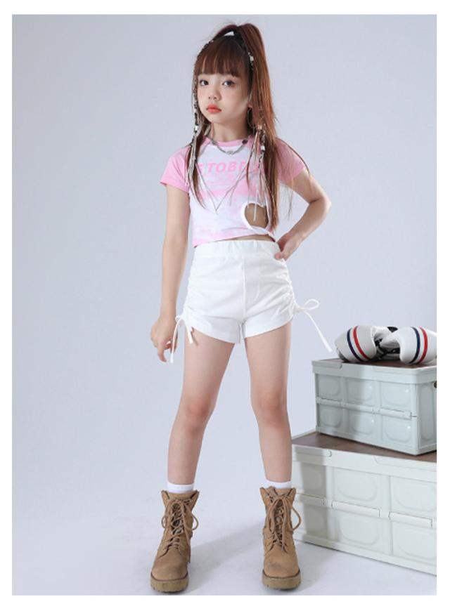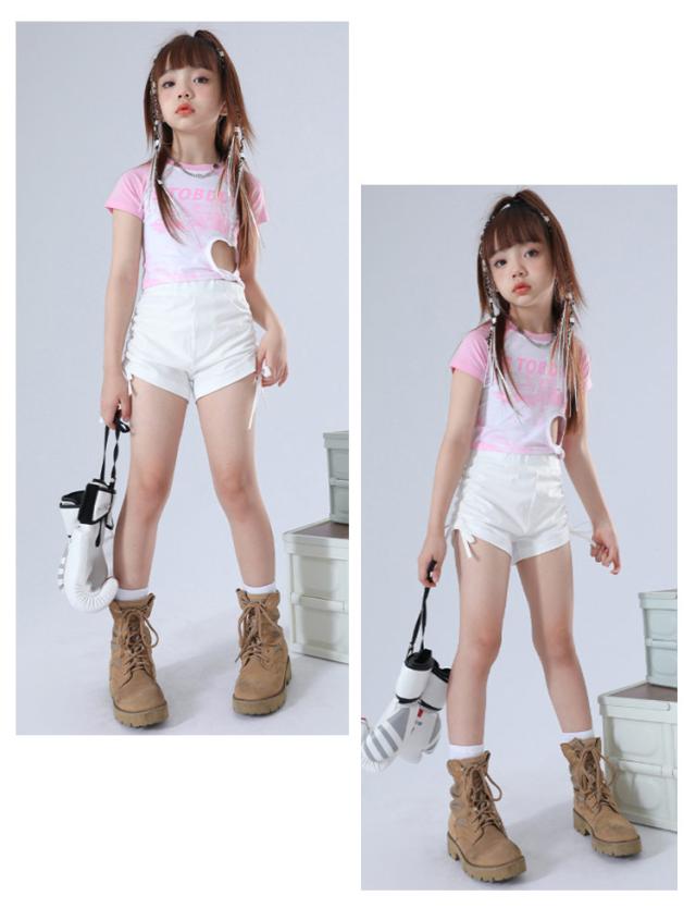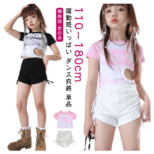 ダンス衣装 Tシャツ 単品 女の子 団体服 半袖 ショーツ キッズダンス 練習着 チアガール チア かわいい ショートパンツ 黒 白 ダンスパンツ 舞台 hiphop K-pop かわいい 演出服 ストリートダンス ジャズダンス ヒップホップ