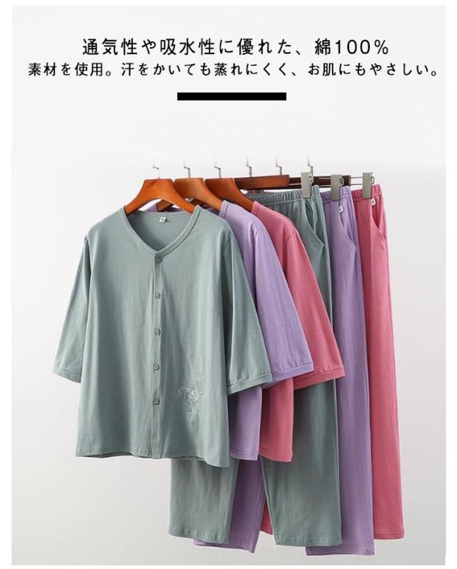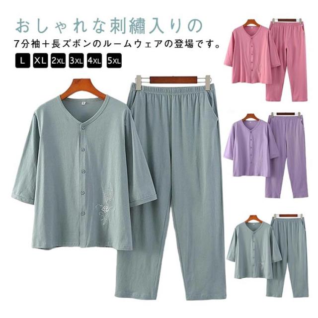 おしゃれ 長ズボン 春 七分袖 刺? 冬 セットアップ 2点セット ルームウェア 婦人服 部屋着 ナイトウェア 長袖パジャマ 寝間着 前開き 秋 レディース 7分袖 長袖パジャマ 100%綿 パジャマ ミセス 祖母 お年寄り 高齢者 敬老の日 プレゼント 50代 60代 70代 80代