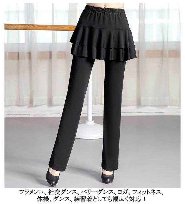 社交ダンス スカート付き 体型カバー パンツ スカパン ブーツカット ヨガ ミニスカート ジャージ ダンスパンツ ベリーダンス ダンス衣装 フィットネス レディース ダンス ダンスパンツ 美脚パンツ 衣装 ヨガウェア ヨガパンツ レッスンパンツ レギンス ストレッチ