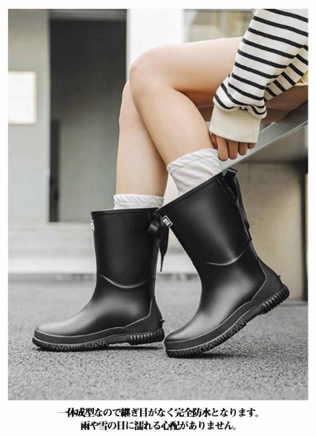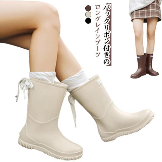 バックリボン レインブーツ レインシューズ 対策 防水靴 雨靴 台風 おしゃれ 完全防水 レディース ロング丈 梅雨 防水 歩きやすい アウトドア 滑りにくい 靴 リボン付き 通勤 撥水 雨の日 レインブーツ 通学 豪雨 晴雨兼用