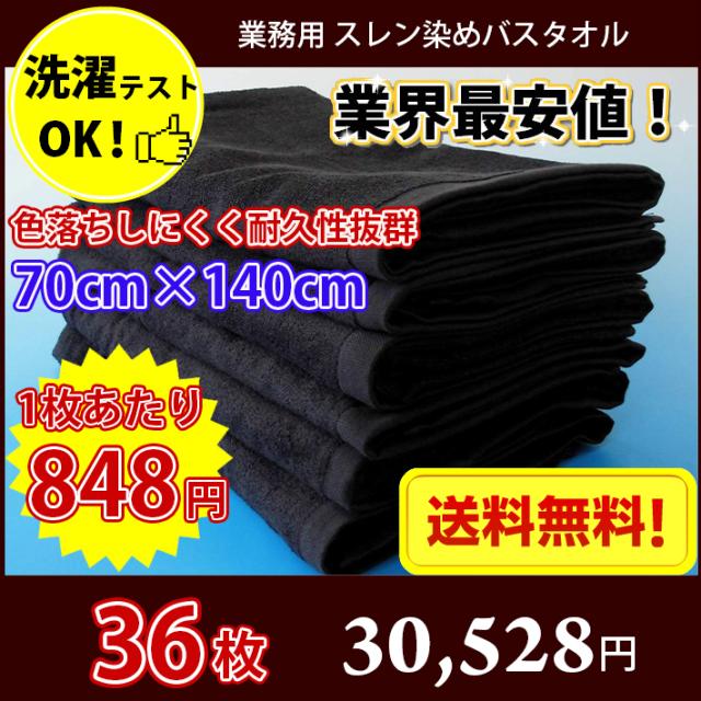 【送料無料】同色36枚セット 長持ちタオル 業務用スレン染め黒バスタオル 1000匁 / タオル バス スレン染め 黒 ブラック 業務用 まとめ買い 丈夫