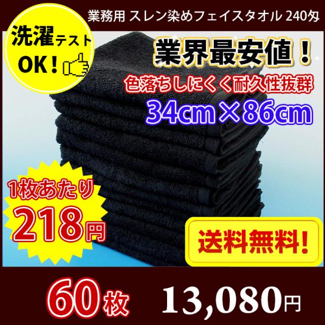 【送料無料】60枚セット スレン染めフェイスタオル 黒 240匁 やや厚手 / 床屋 散髪屋 美容室 美容院 理容室 理髪店 毛染め 業務用 ブラック タオル フェイス スレン染め まとめ買い