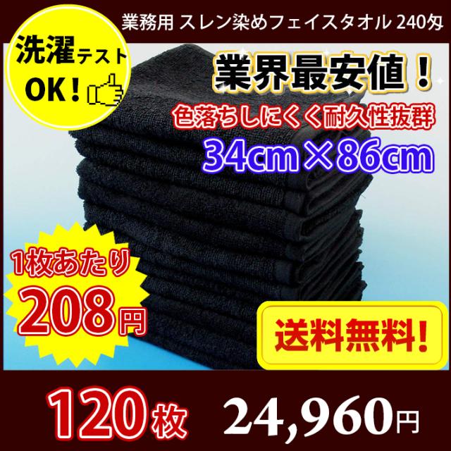 【送料無料】 120枚セット スレン染めフェイスタオル 黒 240匁 やや厚手 / 床屋 散髪屋 美容室 美容院 理容室 理髪店 毛染め 業務用 ブラック タオル フェイス スレン染め まとめ買い