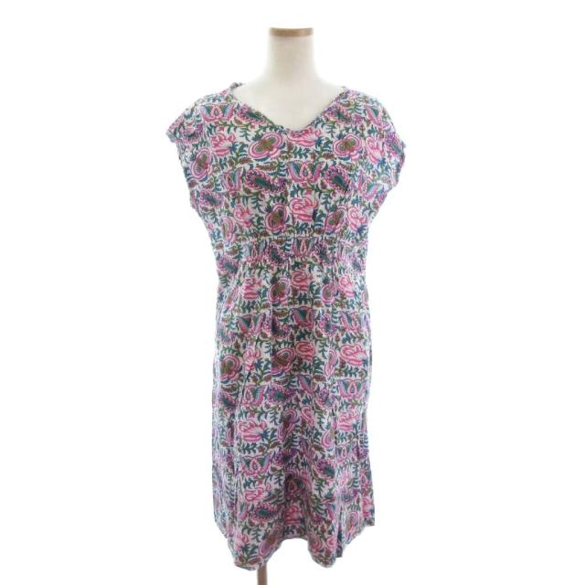 【中古】スカラー フレアワンピース ショート丈 ノースリーブ 総柄 コットン マルチカラー M ■FF レディース