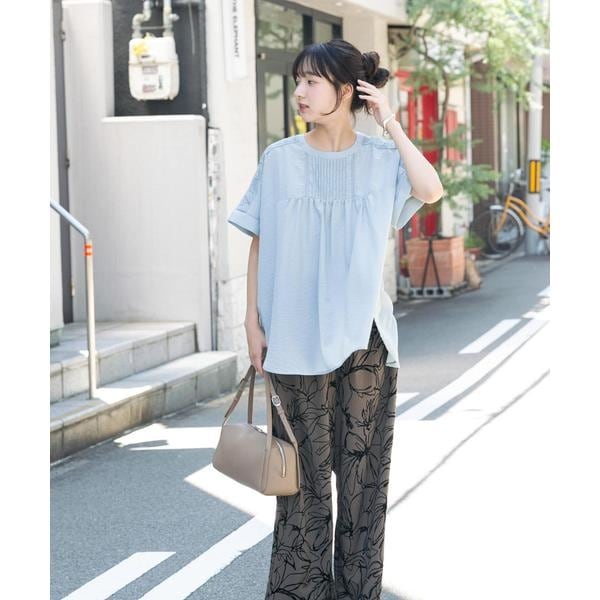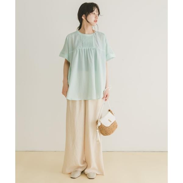 ピンタック×レースの上品ディテールが目を惹くブラウスは、しわになりにくい素材で、手洗い可能なのもうれしいポイント。華やかさがありつつも主張しすぎず、オンにもオフにも活躍します。高見えするデザインながらコスパも優秀で、きちんと感と扱いやすさを兼ね備えた一枚。パンツにもスカートにも合わせやすく、デイリーに頼れる大人の味方です。