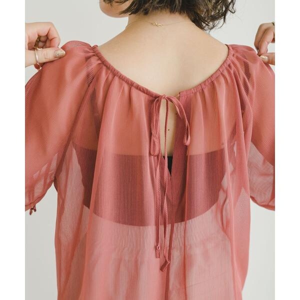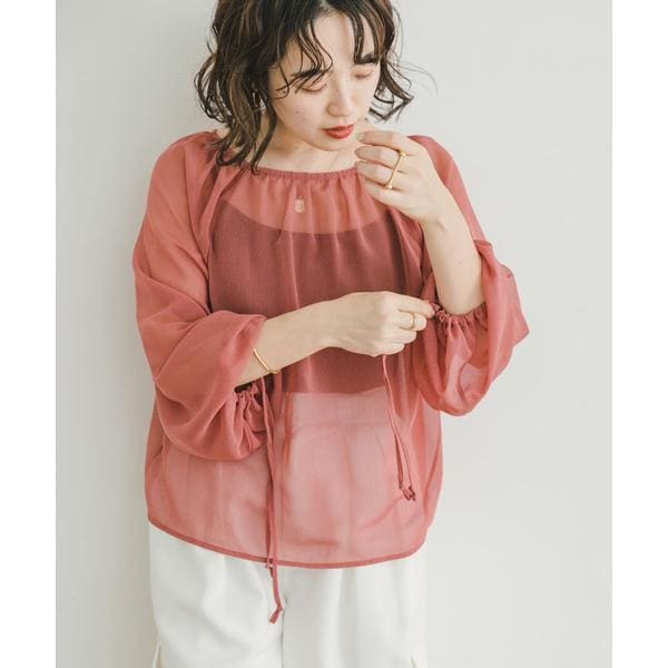 シアーストライプギャザーブラウス