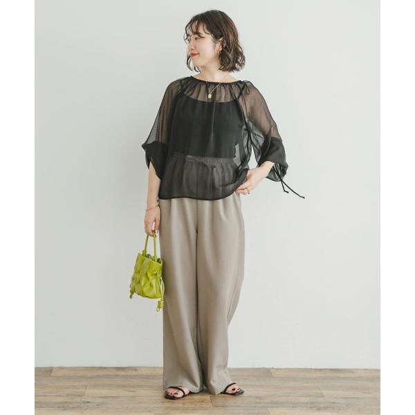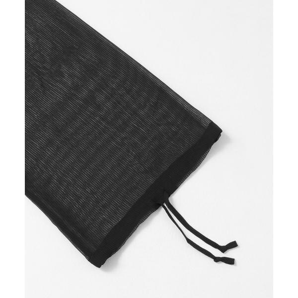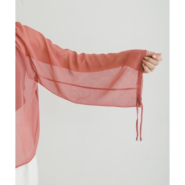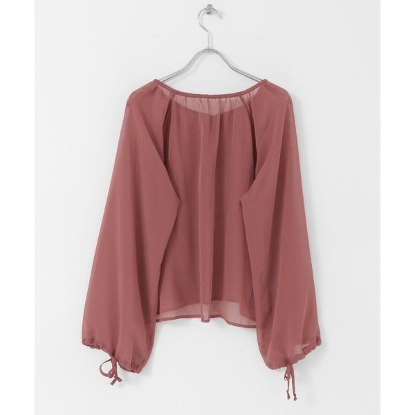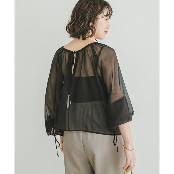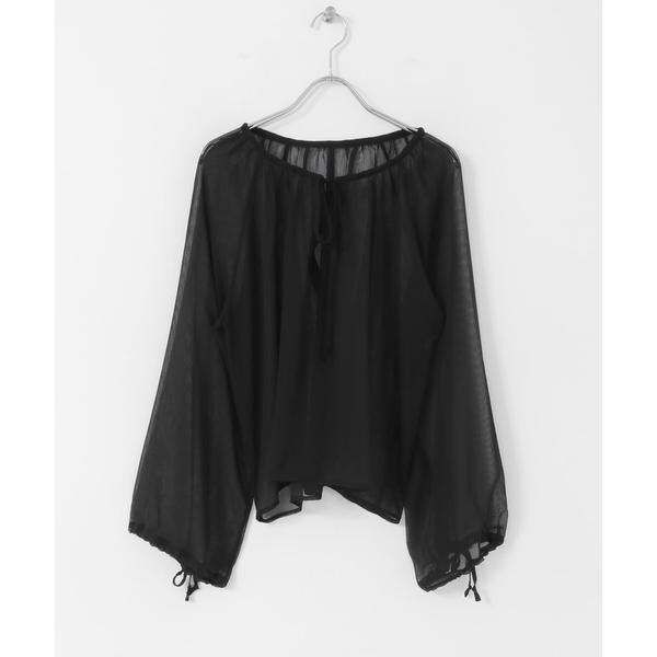 シーズンライクなストライプ柄のシアー生地で仕立てたブラウス。衿元にリボンを施し、フェミニンな印象でご着用いただけます。袖口にもリボンを施しているので、スタイリングや好みに合わせてバルーンスリーブのようなシルエットにしてご着用していただけます◎衿周りにたっぷりギャザーを施したボリュームのある1枚です。