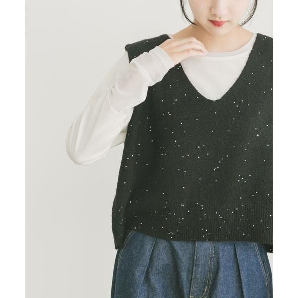 アイテムズ アーバンリサーチ(ITEMS URBAN RESEARCH)/スパンコールVネックニットベスト