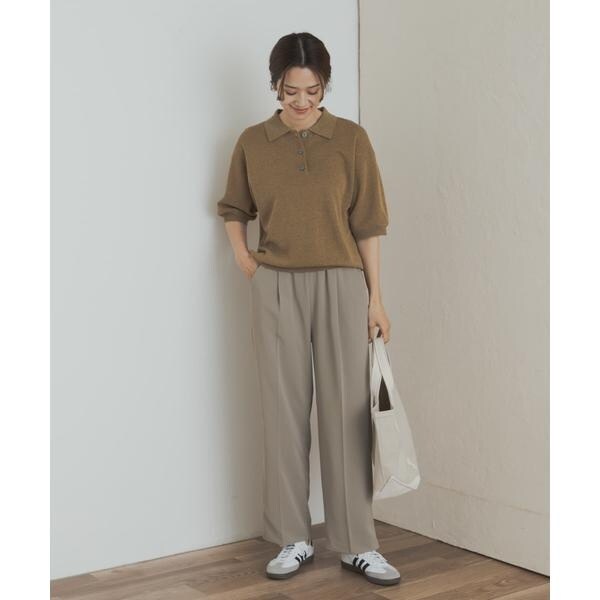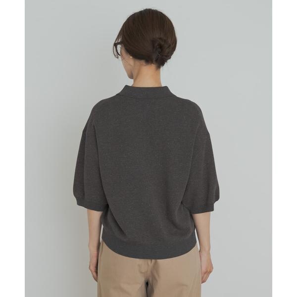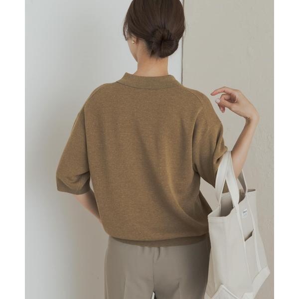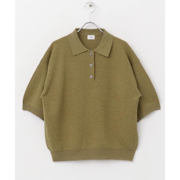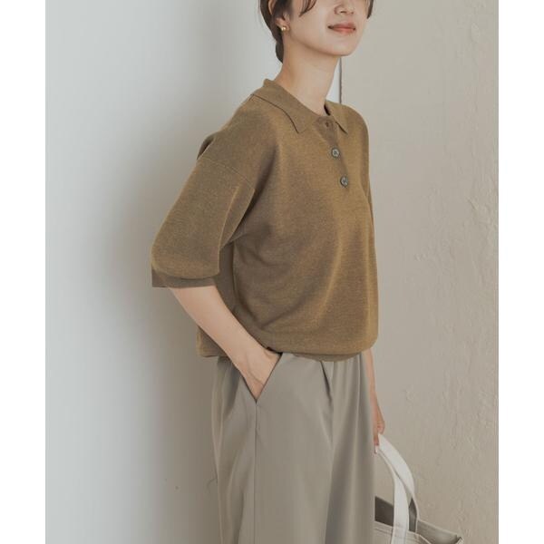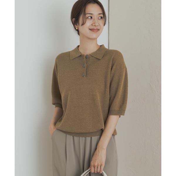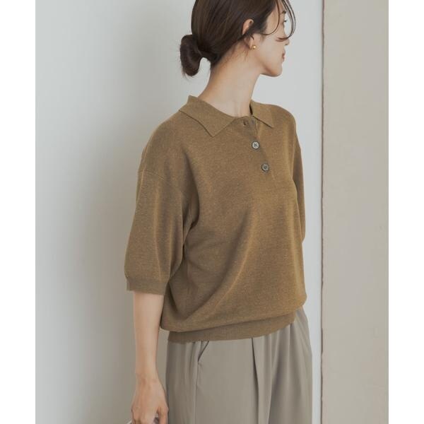 麻混素材でさらりと快適、女性らしい抜け感を演出するニットポロシャツ