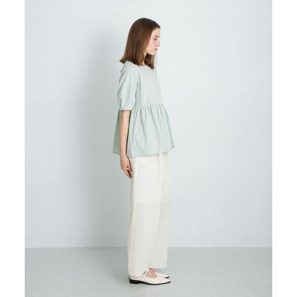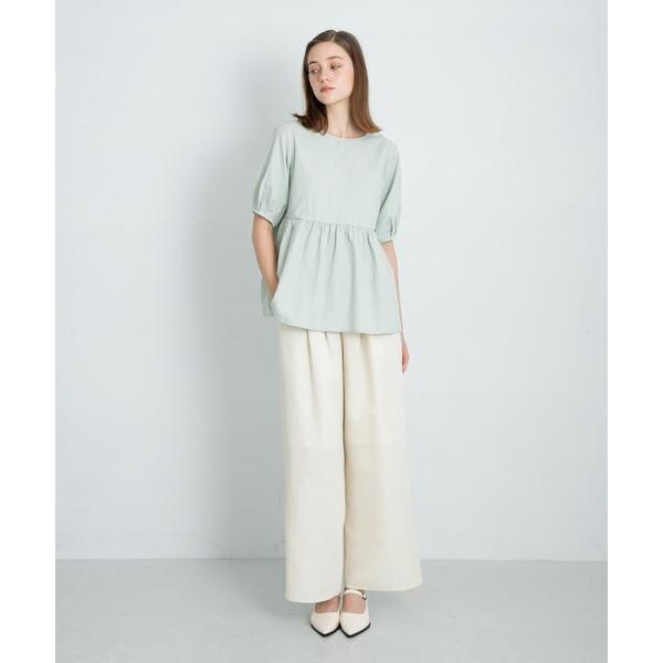 裾が広がっているのでストレートデザインのパンツや、Iラインシルエットのスカートを合わせるとバランス◎