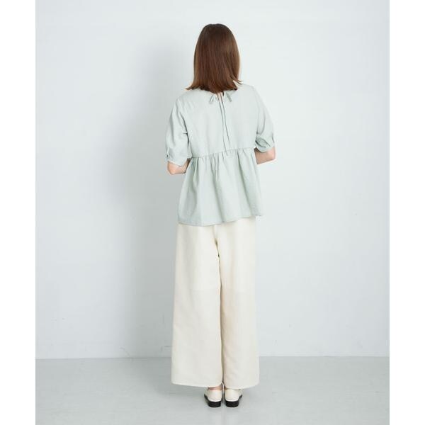 シワになりにくい表面感のあるサッカー素材を使用したブラウス。