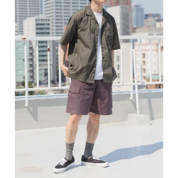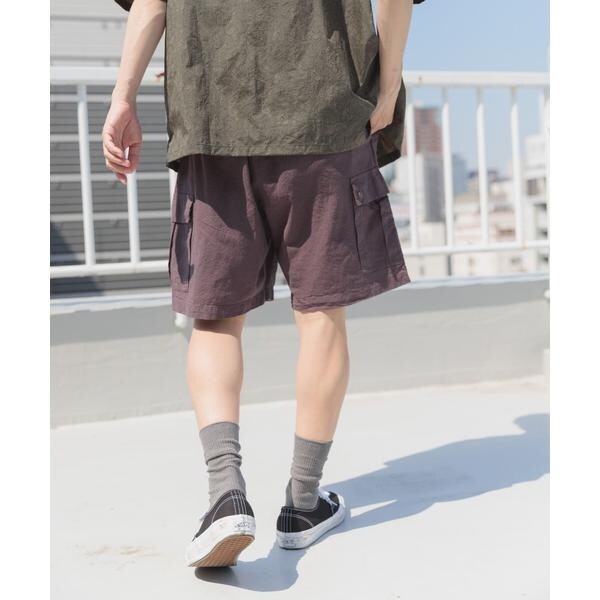 『セットアップ対応』天然素材リネンコットンイージーカーゴショーツ