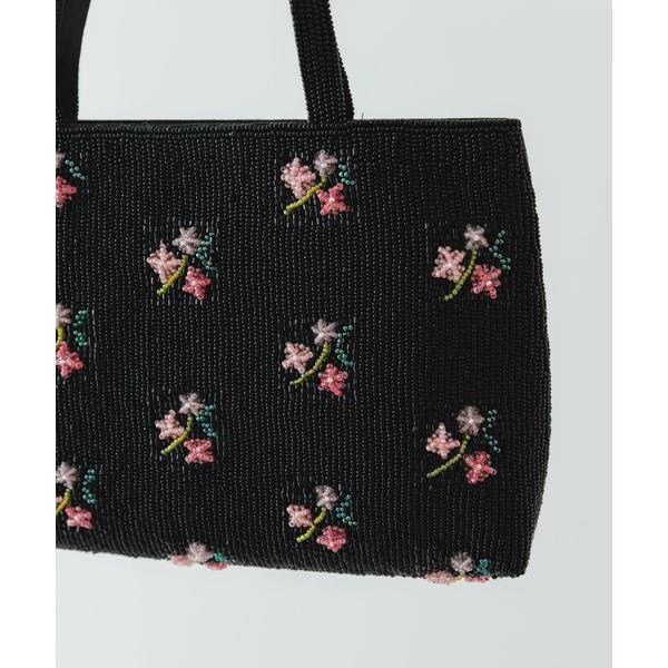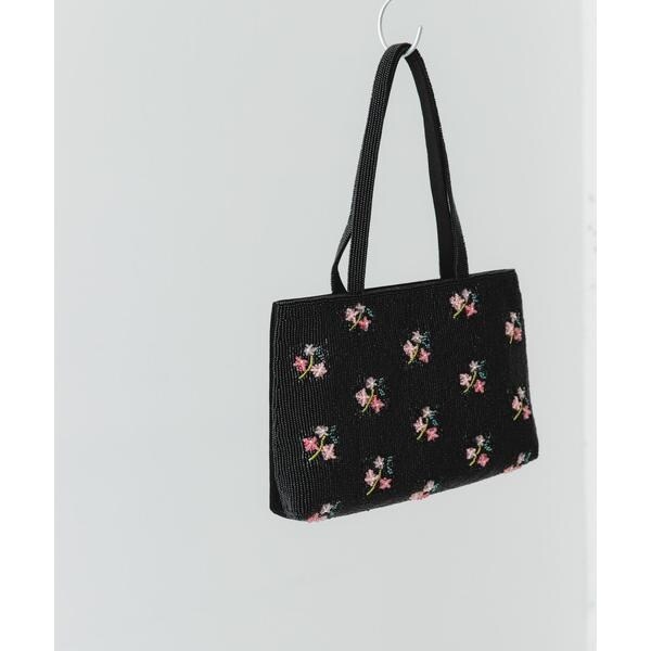 繊細なビーズをあしらったハンドバッグ。シンプルな装いに合わせるだけで、一気に華やかな印象に。
