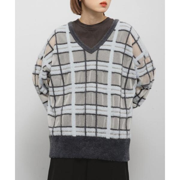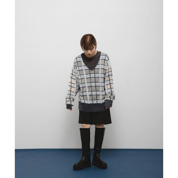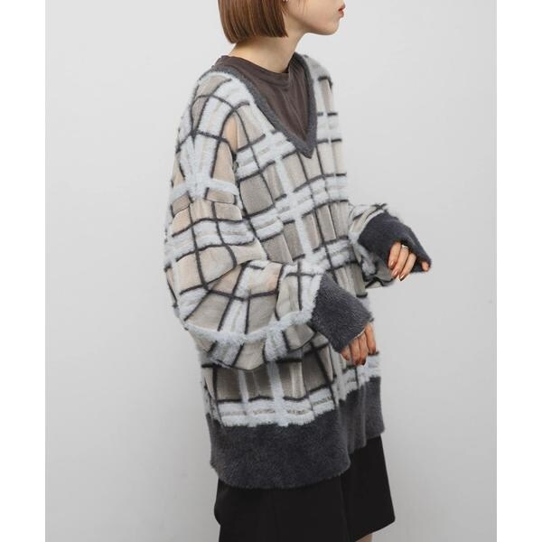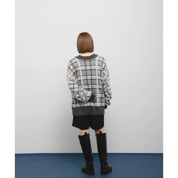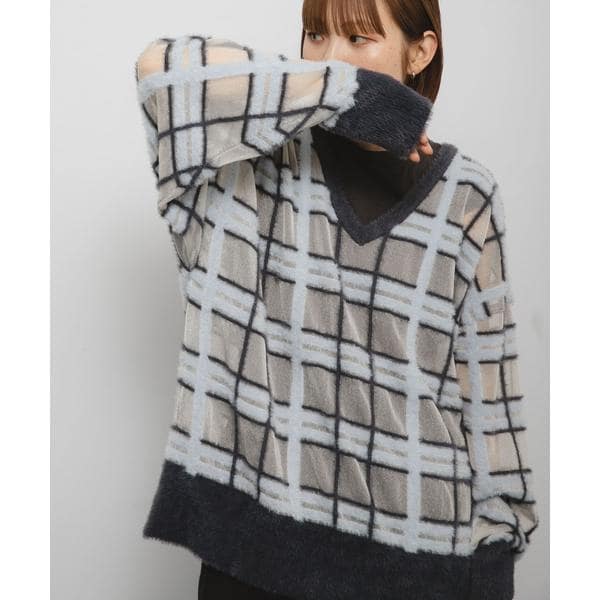 シアーチェックフェザーニット