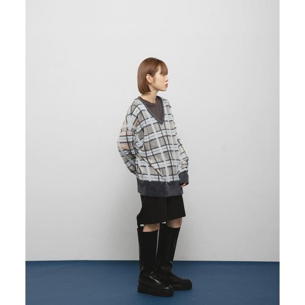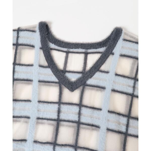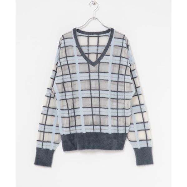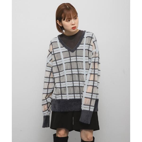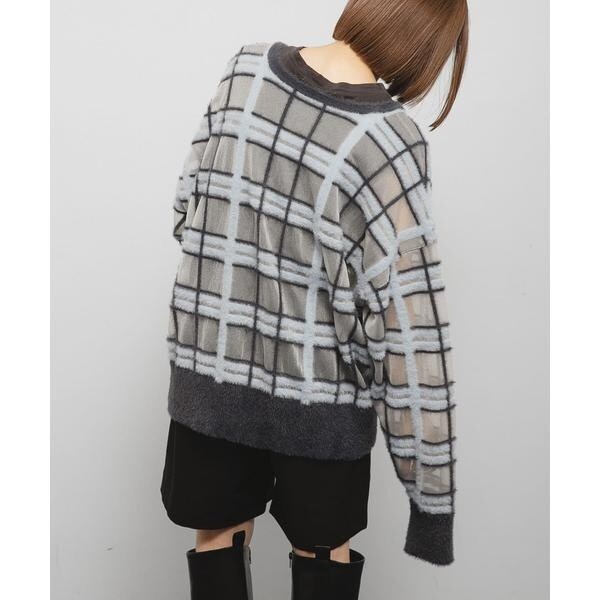 KBF(KBF)/シアーチェックフェザーニット