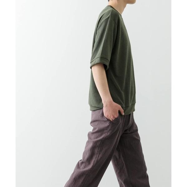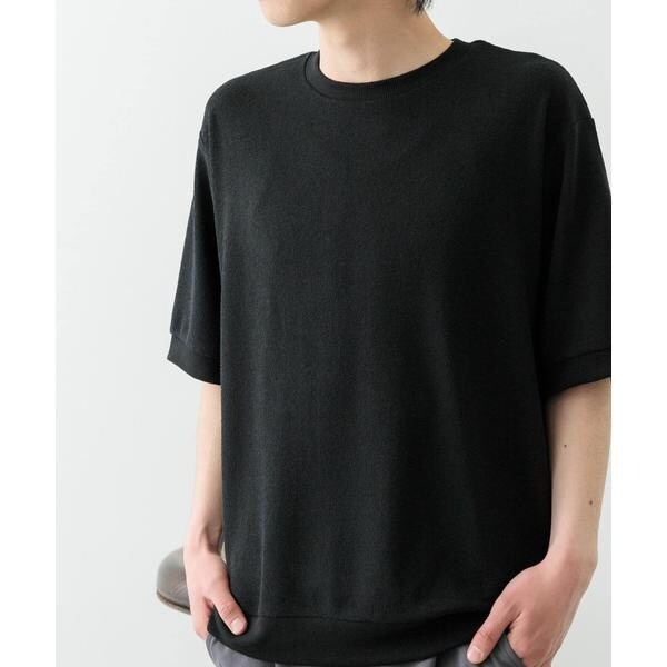 クルーネックのシンプルなデザインながら、素材感で差がつく一枚。