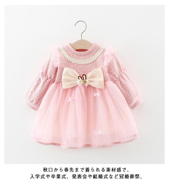 入園式 女の子 ワンピース きれいめ 春夏秋 七五三 前撮り 女の子 ベビードレス リボン 長袖 ベビー ドレス キャメル フォーマル 結婚式 入園式 入学式 子供 祝い 赤ちゃん 誕生日 バースデー キッズ 1歳2歳3歳4歳 送料無料