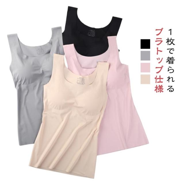 2枚セット ブラタンクトップ カップ付きタンクトップ インナー パット付 ブラトップ 締め付けない ズレない タンクトップ ラウンドネック 肌着 下着